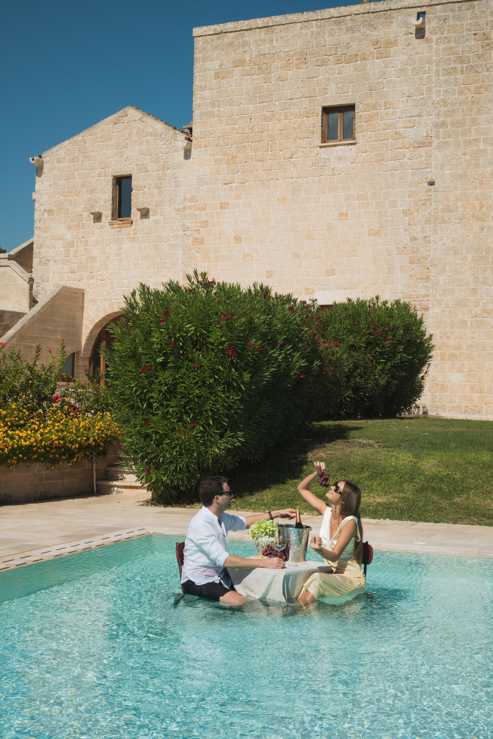 The editorial was designed to immerse guests in the atmosphere of Puglia — from a relaxed vineyard tasting table to an intimate ceremony setting framed by nature. Every element embraced the region’s character, highlighting how a celebration at the masseria can feel both refined and deeply connected to its surroundings.